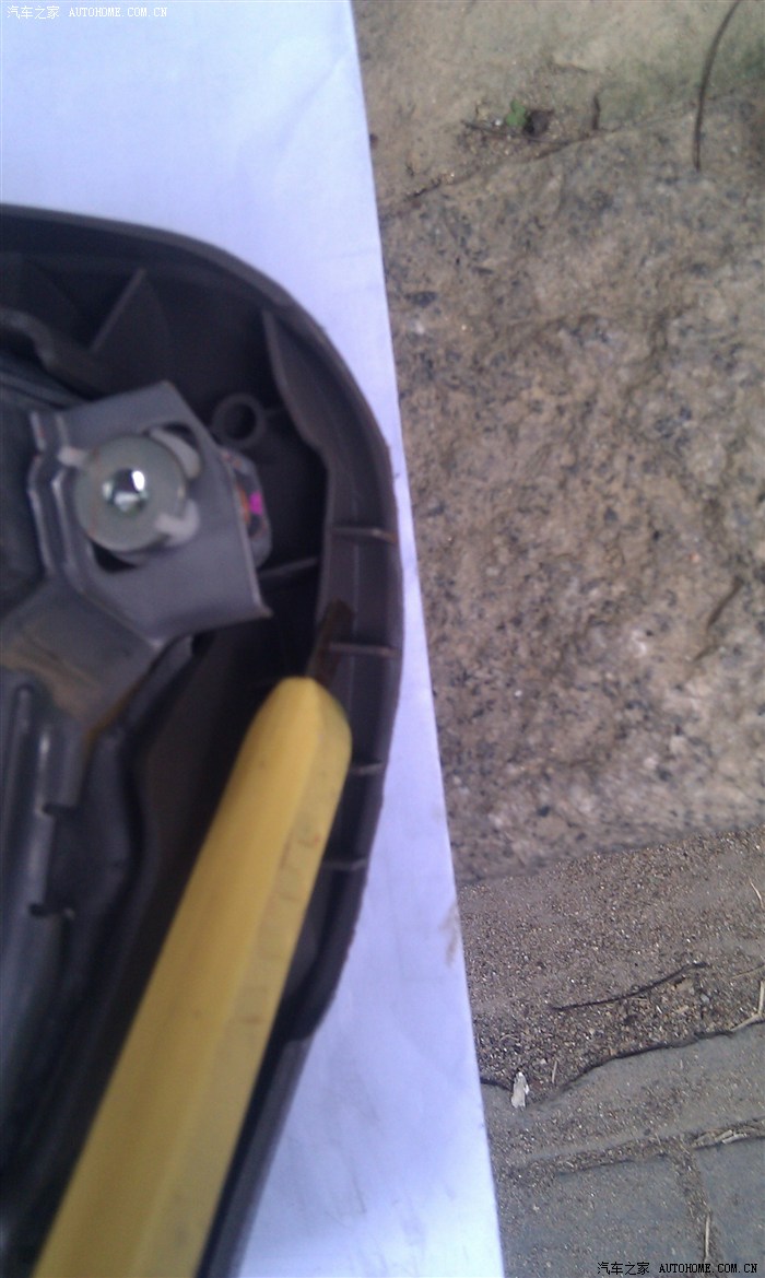 拆开方向盘左右的这两个罗丝,这个罗丝比较麻烦,一定要买七字型的功具才够力忸动它,把这两个罗丝拆了安全气囊就可以拿下来了。