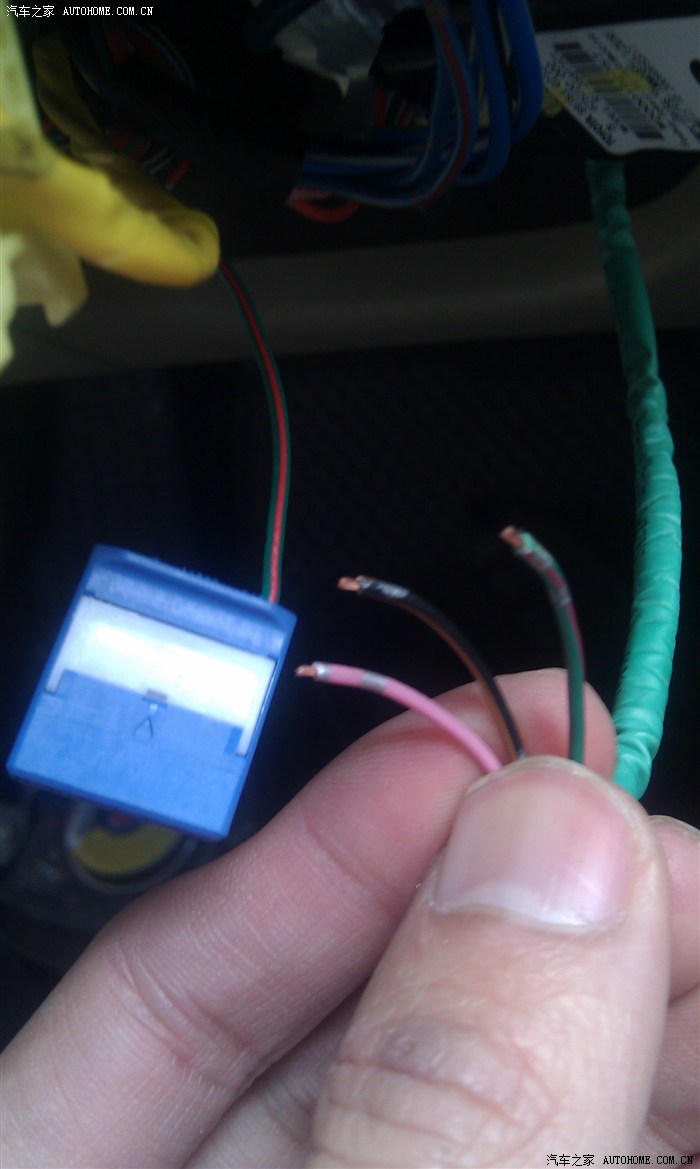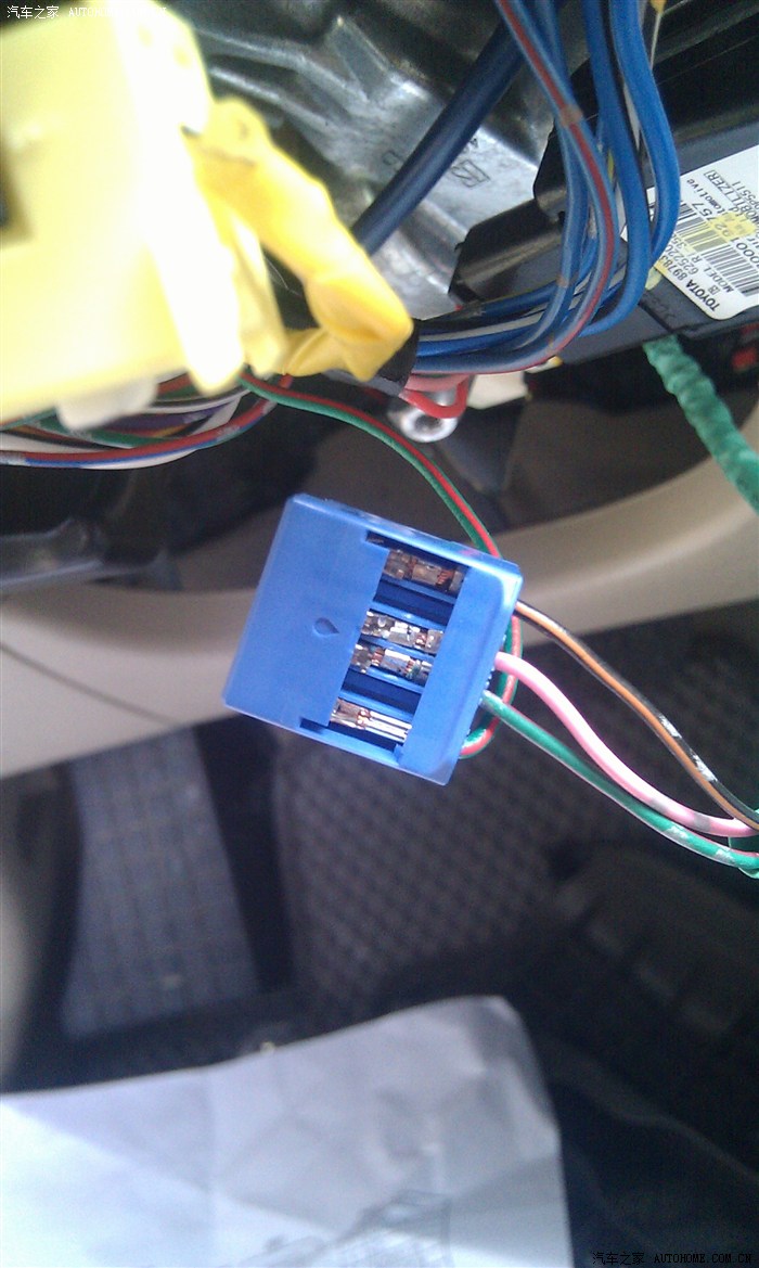 将多功能键的尾线接到原车喇叭线插座上面空出来的几个针脚上就可以了,不用作任何的改动。