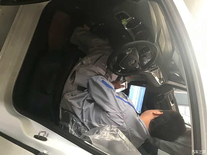 师傅在消除故障码(保养灯复位、胎压灯复位)。