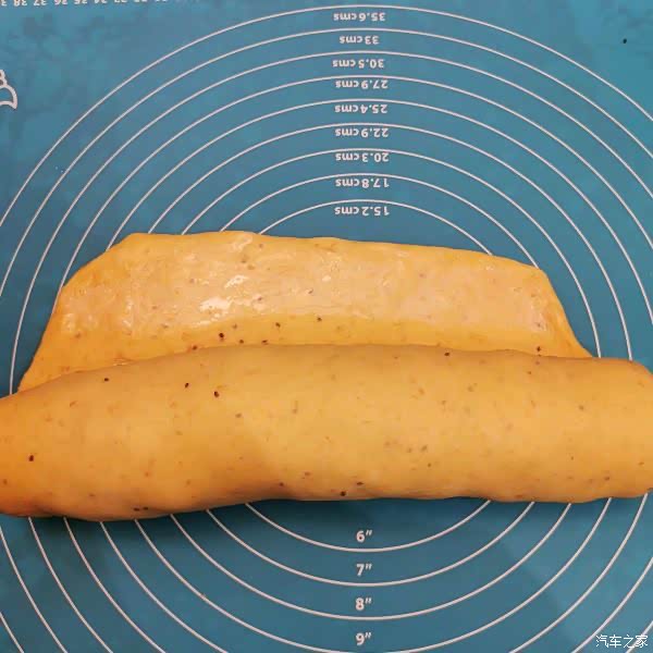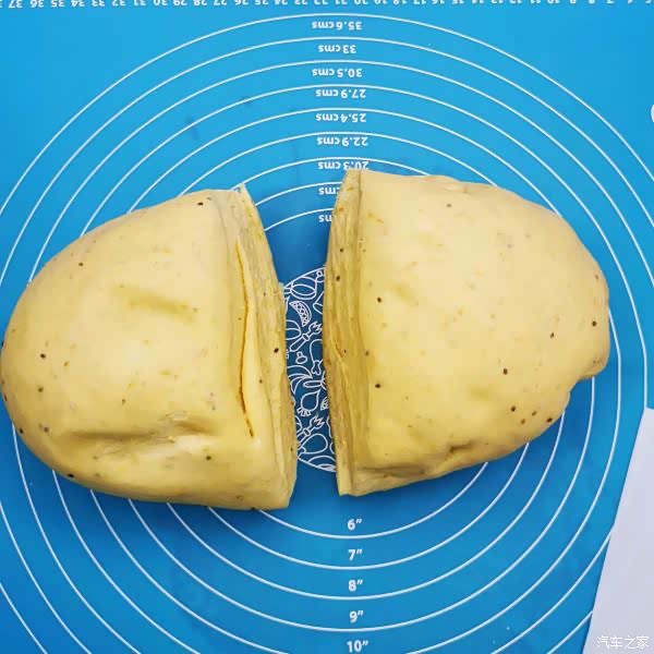 发酵好的面团从冰箱里面取出来,直接分割成两块,每块大约重610g左右。