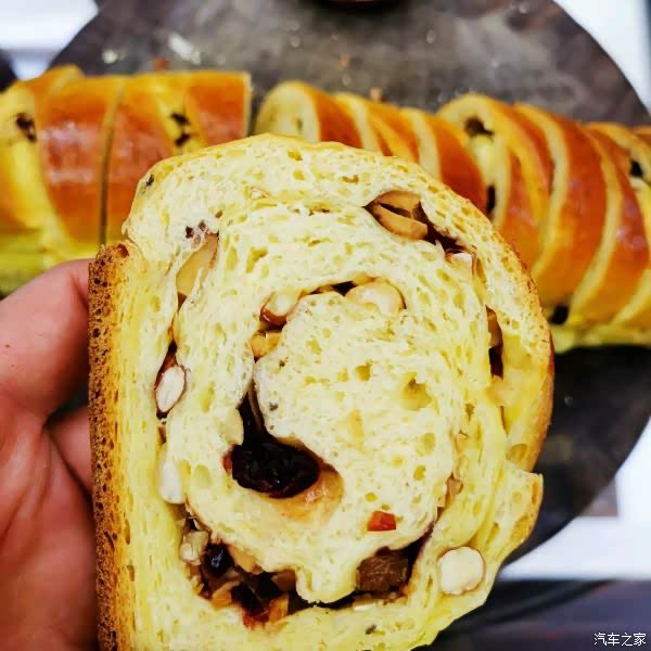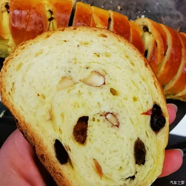 高筋面粉 650g 、小麦麸皮 10g 、奇亚籽 10g、纯牛奶 200g、细砂糖 100g 、蜂蜜 40g、盐2g、黄油 50g 、中等大小鸡蛋 三个 、耐高糖酵母9g、朗姆酒 10g 、果干(随意): 、蔓越莓干60g、葡萄干 60g、腰果 60g 、盐焗杏仁 60g