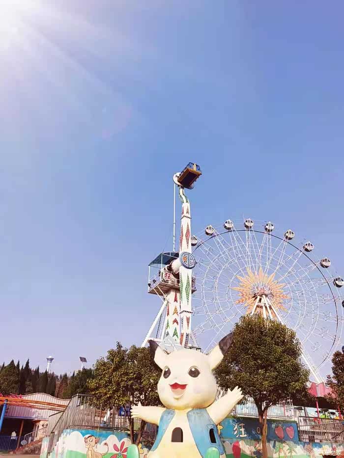 到游乐场啦,摩天轮、过山车,小男子汉肯定哪个刺激玩哪个,练一练胆子。