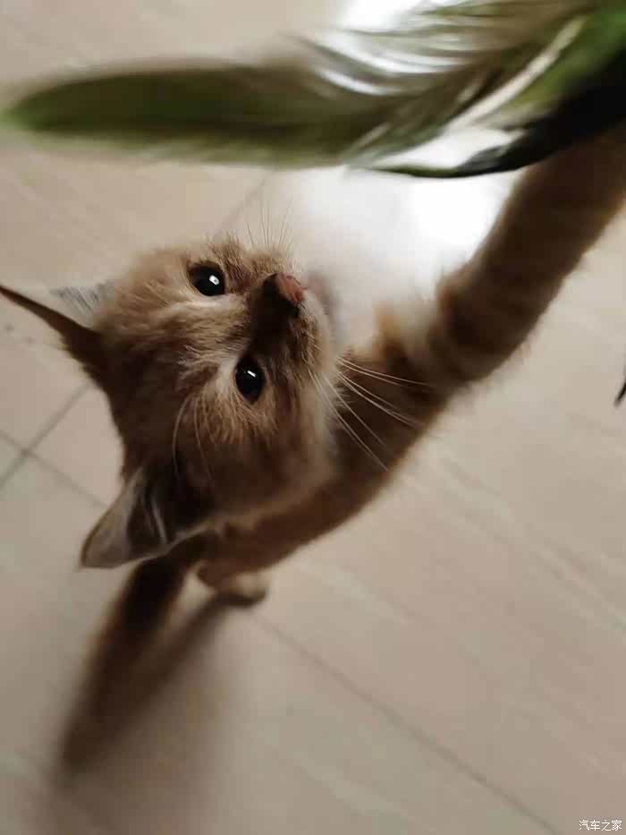 看看我们的小喵多棒,居然还能自己站起来够东西。