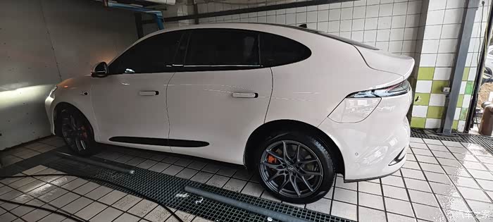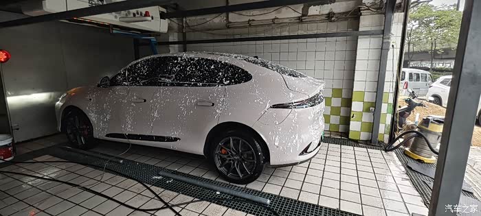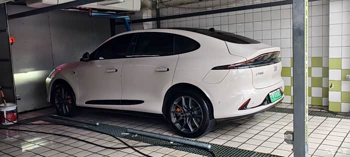 这里说一下智己的车身颜色,智己的淡色系车真的很耐脏,上面这张照片我已经快一个月没洗车了,中途还跑了高速,现在只是给轮胎稍微喷了点水,远处拍出来是不是和洗过的感觉一样?(可与后面洗完的图片做对比)其实把图放大或是现实中凑近看是能看见车上的污渍的。淡色系不然高速一个月洗一次都都保持车身视觉的相对干净