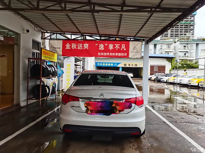 出行前开去4S店检查是少不了的,下雨天,车子开得慢了些,不过海口一到下雨就堵死也是服气