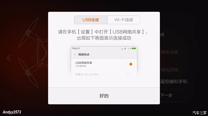 手机连遥控器有两种方式,一种是USB连接一种是WIFI连接,在1080版里有无线连接,4K版就没有了。原因是WIFI连接老丢图传信息。
