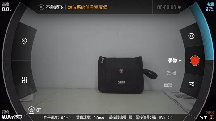 切换到实时图传模式。秀下汽车之家的洗漱包吧,右侧是切换录像、拍照和直播。直播没有试验过。有机会试一下