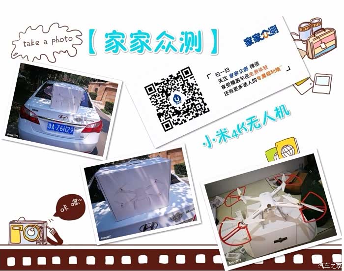 ,也不怎么图便携性啊、功能性啊,就一个简单的要求,飞得稳、拍照清楚,能为汽车之家提供绵薄之力就就行了,本人实在是不能和大神相比。如有言语方面的冒犯,还请海涵。话不多说,咱开始评测!