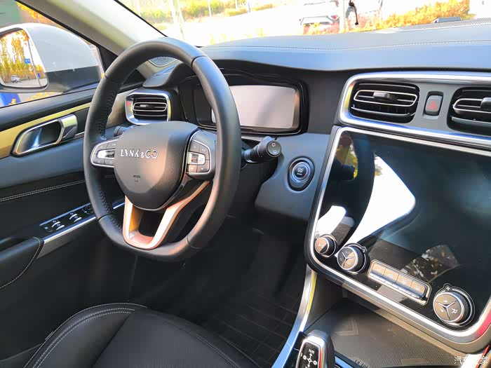 领克01的内饰布局给人一种高贵的感觉,老婆也这样认为。整体布局简单明了,功能区布局也非常的清晰。中控的设计也都偏向于驾驶员那一侧,非常的人性化。空调出风口,中控大屏旁边以及中控平台都很好的运用了镀铬装饰材料,大大提升了档次感。真皮包裹的多功能方向盘提供的是好的手感。真皮座椅也是,提供了好的支撑性和包裹性,带来的是舒适感。坐进去,触摸到的地方都是软质材料的应用,给予的也是好的体验。所有真皮包裹的地方都搭配有缝线,既有运动美观的感觉,也显高级感。