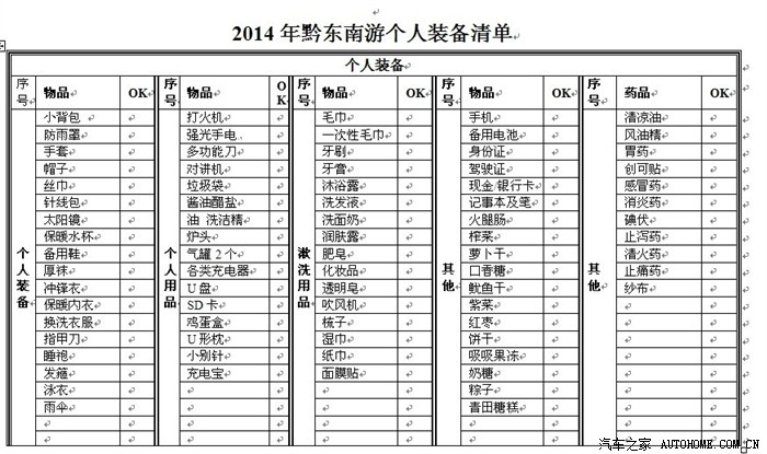 我所带的个人用品,担心高速堵车或者过年没地儿吃饭,带了很多吃的和炉头,随时准备自己开伙,最后发现多虑了