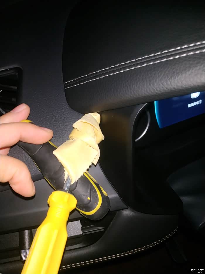 拆仪表上护板,千万不要相信大神他们讲的,双手用力往外面拔,我就这样拔了半个小时,纹丝不动,估能能拔的动的都是五好青年,像我这种有女朋友的,就算了。用两把螺丝刀,一把把柄放在另一把的下面,上面的螺丝刀插入上护板边缘用力下压,不要怕,都是卡扣,大力出奇迹。