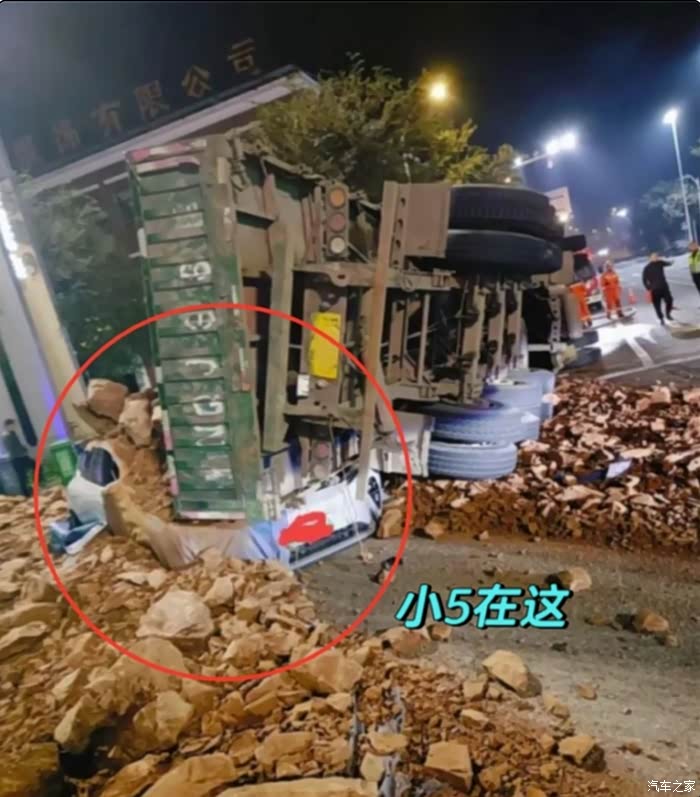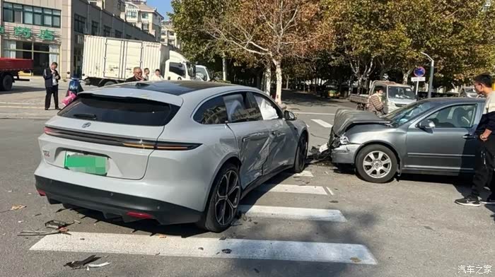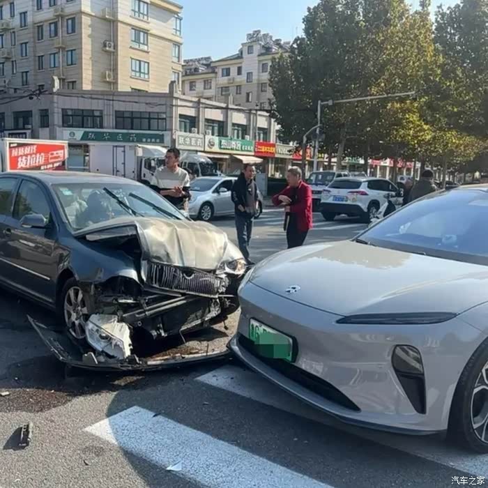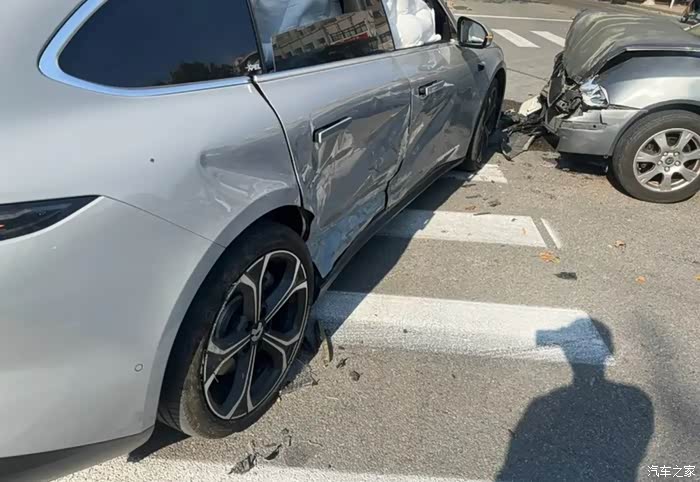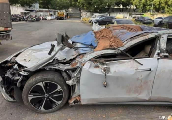 1️某ET5T车主被渣土车45°追尾,后防撞梁仅凹陷8cm(对手车头全毁),三电系统毫发无损,车主开门就走!