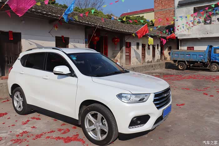 老家这边到处都是一地的红色鞭炮纸,充满了年味,戴个口罩出来热一热车,车放太久不启动也不好,话说这是小型SUV吗?跟我这样的大男人一对比,哈二显得很大很霸气。