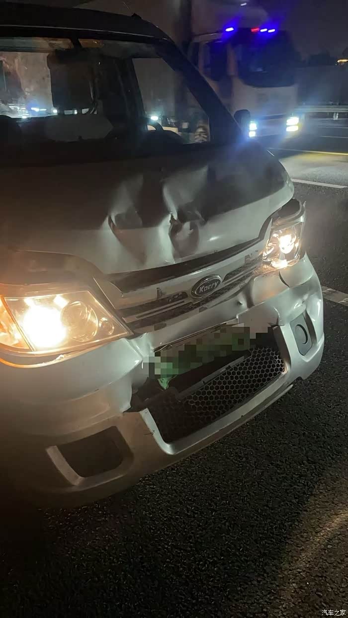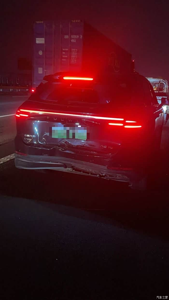 后车车头凹陷,轮子歪了,只能拖车下高速