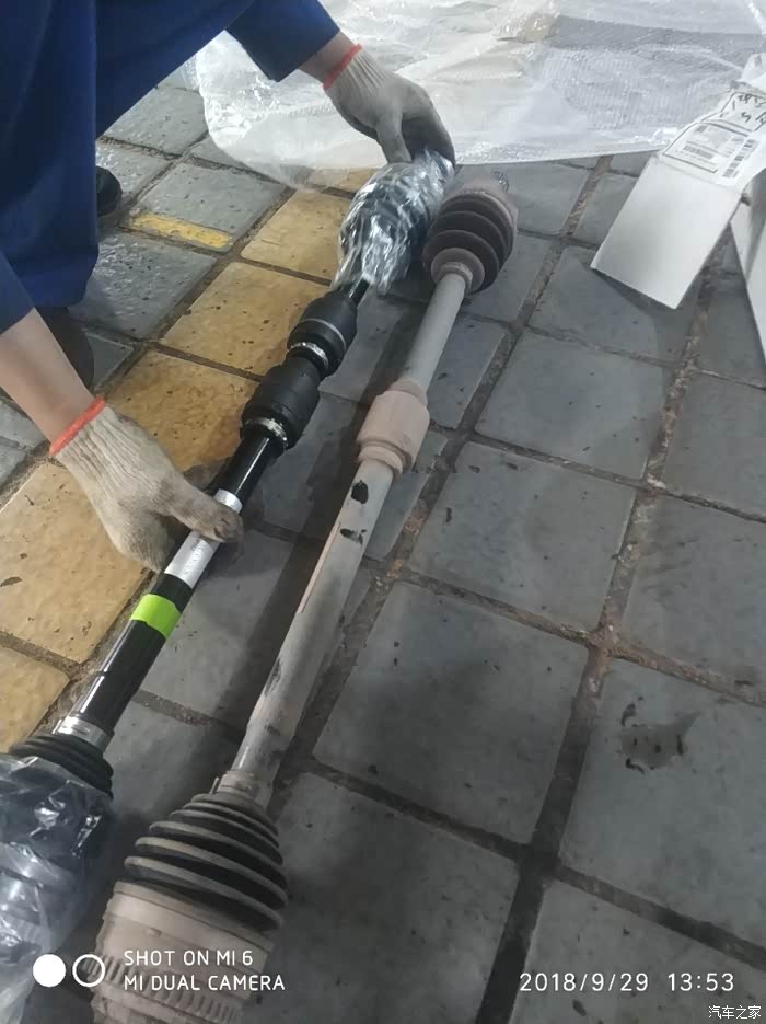 看到论坛里各种更换右半轴的帖子,自己也去给厂家打电话投诉共振问题,让我去4s店检查,最后查出来问题了,可是4s说我车子已经脱保了,不能索赔了,车是14年12月份买的,我肯定不服气了跟4s吵了起来,最后他们答应给我换,说如果换了以后共振解决了就给我做索赔,如果换了解决不了就没办法,我说怎么可能解决不了,这么多人换了都解决了,他们就叫厂家发货,三四天就到货,我立马就去更换,看图