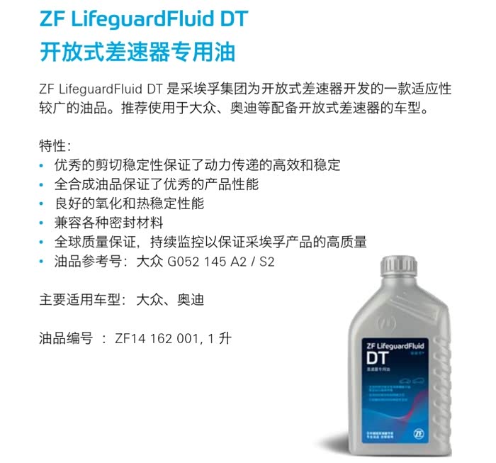 采埃孚DT和DTC差速器油有什么区别?