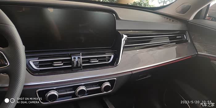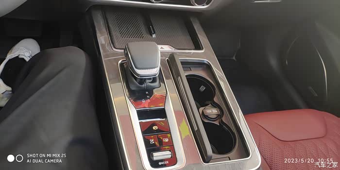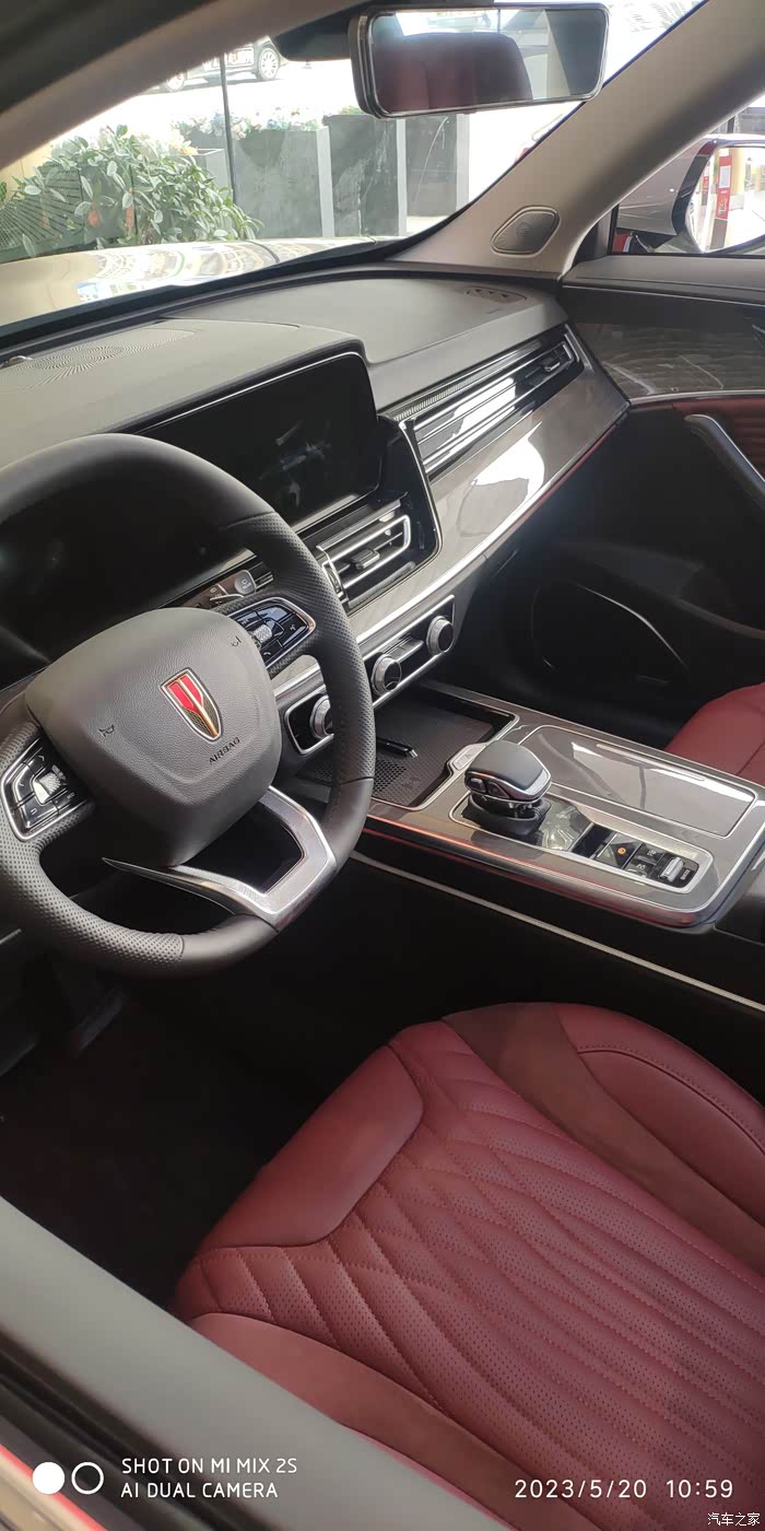 酒红色的座椅,只有顶配的才会有这种颜色,豪华感爆棚。依然是NAPPA真皮与Alcantara材质搭配,用料依然考究,做工细致。中控台的布局有了全新的设计,完全看不到以前的一点痕迹。档把偏向了驾驶员,无线充放在了以前水杯的位置。更多的翻盖设计,更加简洁,更加美观。空调按键采用了实体按键,装饰板也换成了类似实木感的材质,大连屏依然那么霸气,这也是我当年第一眼就看中HS5的理由之一。