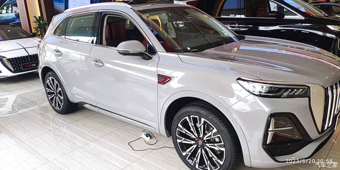 5月20当天是我作为一名19款红旗HS5车主的2次保养来到我们当地的红旗体验中心,顺便来品鉴一下我们新款的红旗HS5。那时距离上市还有一天。我品鉴的这台车是灰色的,也是新红旗HS5新增加的颜色。灰色给人一种低调奢华的感觉,不像黑色的那样大气,更多的是一份内敛和沉淀。中网进气格栅有了明显的变化,车标的衔接也更加一体。