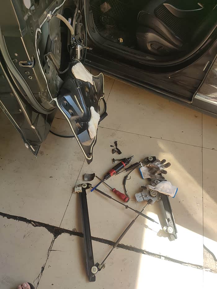 昨天晚上突然驾驶侧玻璃直接掉到底了,按了按钮有电机响声玻璃没动静,以前看过大家的帖子猜想多半是支架嗝屁了晚上问了问专修价格今天早上就去换好了三百多正厂件