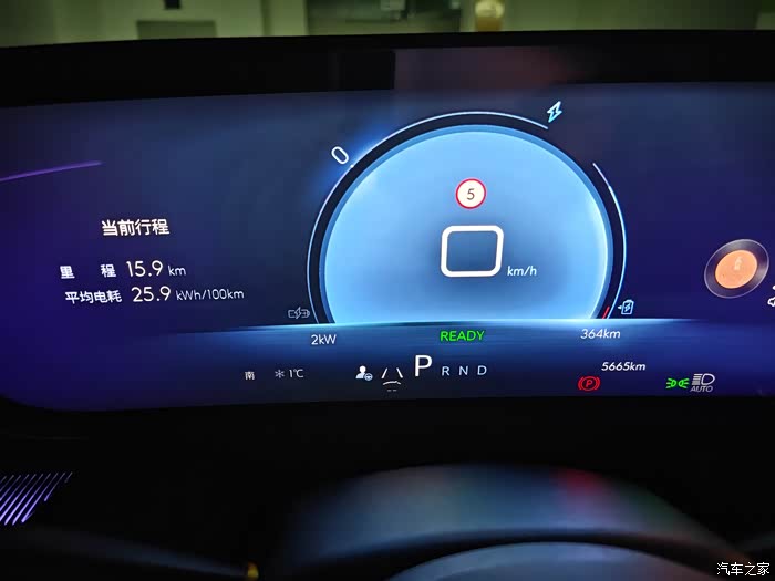 第二次,总里程5631km,电量显示可行驶412km,当电量显示可行驶364km的时候,总里程数为5665km,这样表显行驶48km(412-364),实际行驶了34km(5665-5631),达成率0.708,这期间记录的一次15.9公里的电耗在25.9kWh/100km。