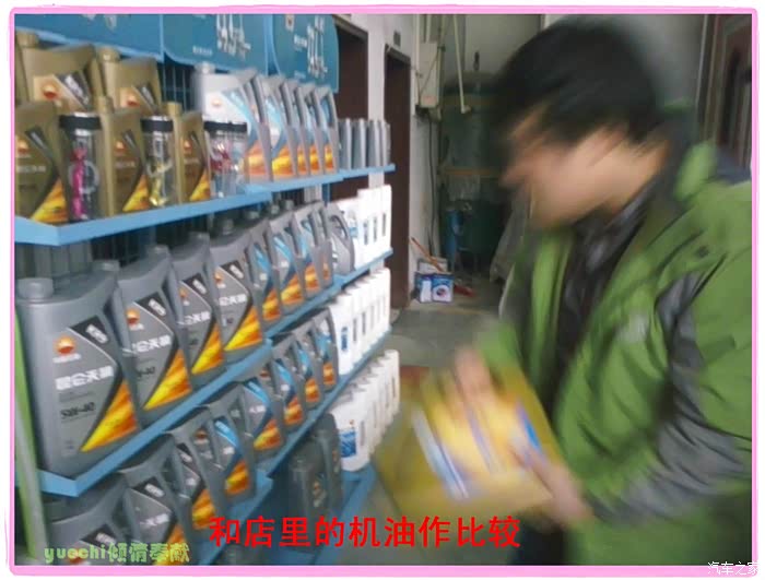 店主对的两掺使用也很感兴趣,亲自用自己店里的机油作外观、油样等对比。