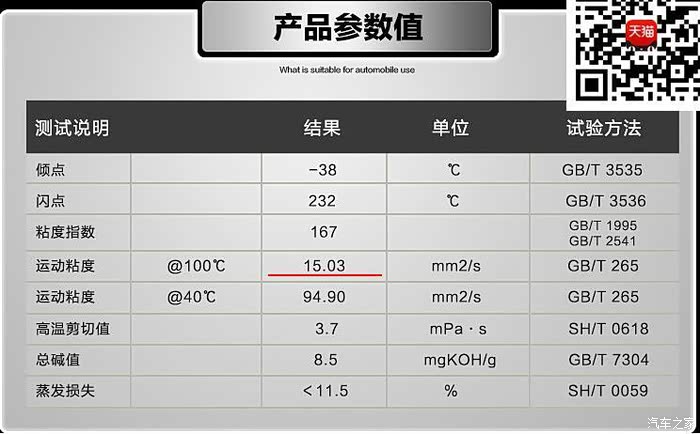 上图为5W-40的,当时标称机油100度的运动粘度高达15.23!~,本人不懂,咨询了不少人,都说太高了,不敢用!~