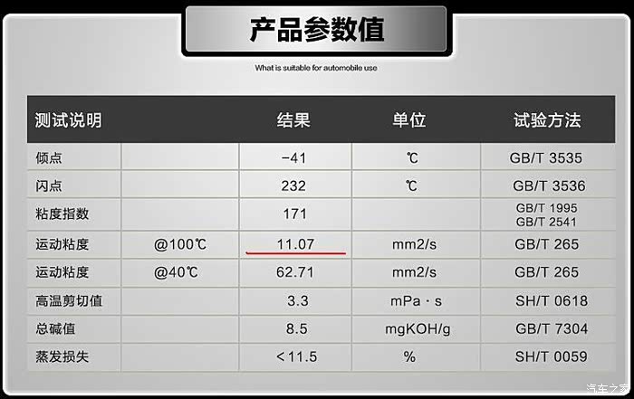 上图为5W-30的,当时标称机油100度的运动粘度为10. 61!~,和现在网上标称的参数不一样!~