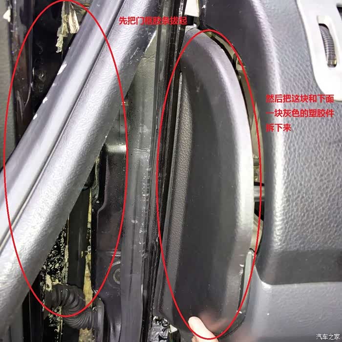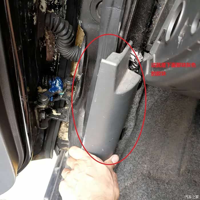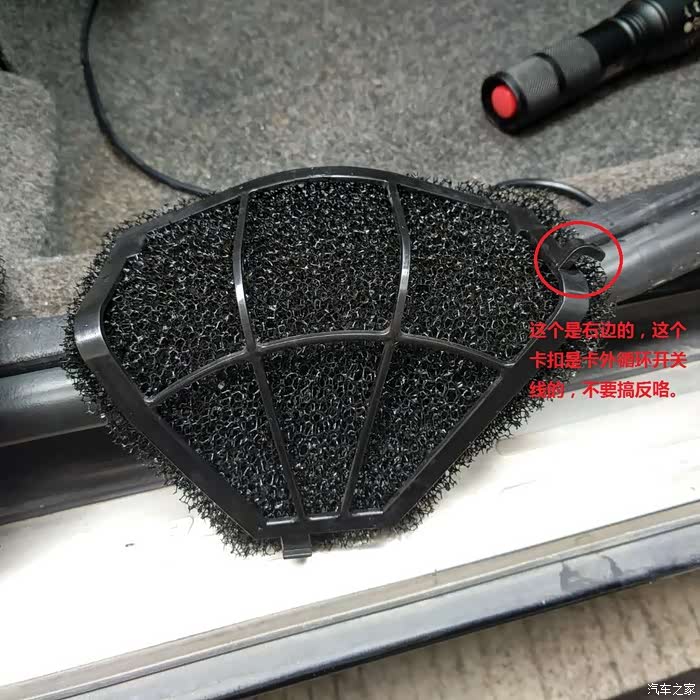 然后就把中控台下面中间位置,右边储物柜,方向盘下面三块胶块拆下,因为当时没拍到图片,没法上图,抱歉。(不过没有太大的难度,见螺丝就卸,)先中间,后两边的次序。切记不用拆中间音响部分!!!只需要拆下面的三件塑胶件就可以了。拆防尘网的时候,防尘网底部有个胶扣,向上推,然后向外拉,防尘网就可以卸下来了。