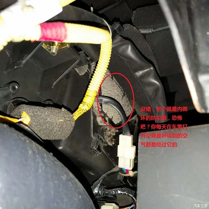 先说句题外话,外循环有空调滤网,很容易更换,而且每次保养都会换新的,如果内循环也有的话,可以跟家用空调的防尘网的使用环境与清理周期比对一下,大家脑补一下这个防尘网该有多脏了。但是又极少听说要清理及更换的,而且非常不方便。看完这篇***大家就知道有多恐怖了。