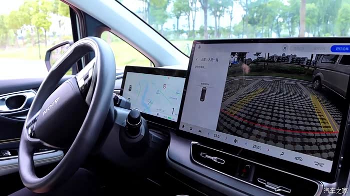 AION V Plus的这套很清晰的360°全景影像的功能。有了它,倒车的时候我就可以很清晰的看到车位前后左右的视角,包括我的车所处的位置。这就很方便了。然后就算是晚上地下车库黑漆漆的,这个全景影像也有不错的清晰度,真不错。