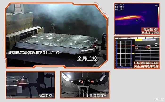 极氪001电池能量密度高达250Wh/kg,由此带来的就是电池的安全性问题。极氪001配用的是拥有“不起火”特性的Ni55三元锂电池,其采用的是CTP设计思路,通过优化电芯列阵方式节省出电芯占用空间,进而提升了电池包容量。而且壳体内部和电芯与电芯之间都填充导热胶,使得极氪001极芯电池包的安全性能有所提升。此外,极氪001电池采用5:2:3的镍钴锰(NCM)含量配比,使电池性能更加趋于稳定,同时采用高电压单晶三元材料,进一步提升电池安全性能。在电池针刺试验中,极氪001的电池表现令人满意,电池只会出现冒烟,而不是直接自燃。正是拥有这样的电池安全技术,使极氪001在拥有9万辆市场保有基数的前提下,至今仍然保持着电池零自燃记录,这在电动汽车业界可以说是一个奇迹!