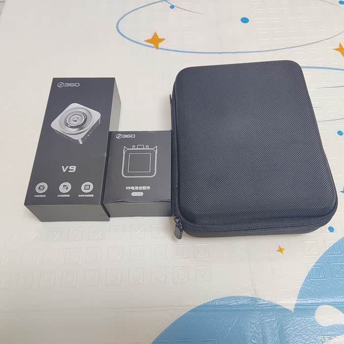 拆开快递,总共三个主体,分别是360V9主机、V9电池仓和配件套装。