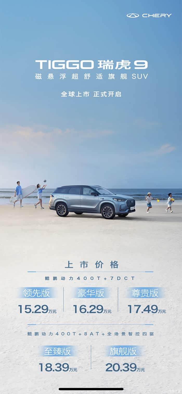 瑞虎9 上市,15.29万—20.39万