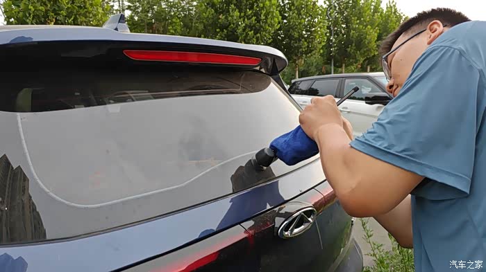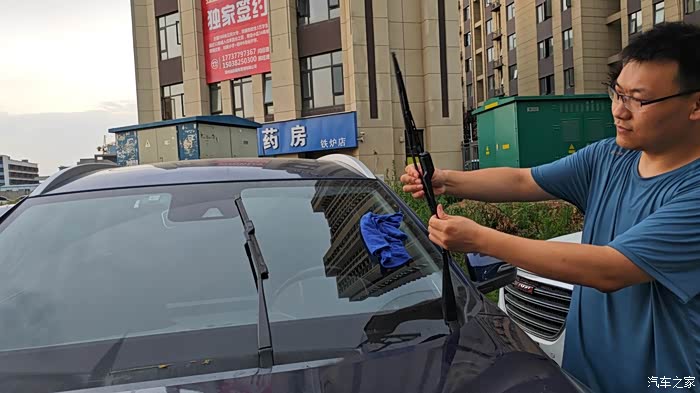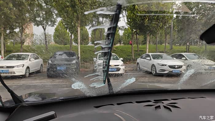 新雨刷安装好后,喷玻璃水测试。前雨刷效果超