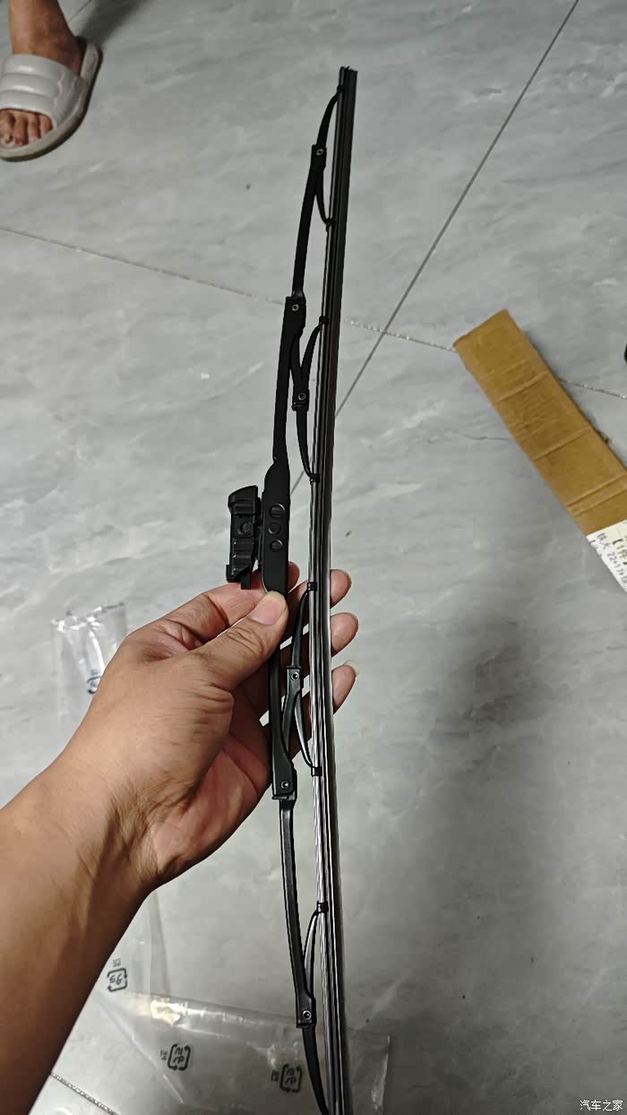 在网上买的雨刷到了后,孩子陪着我去拿。打开包