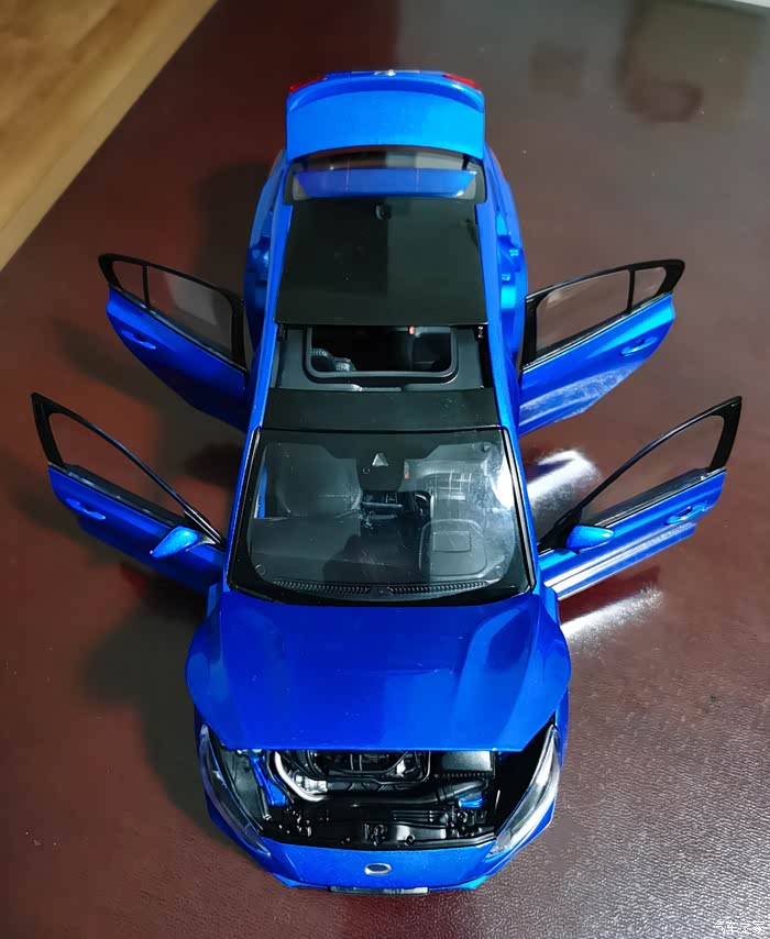 福克斯车模包装拆开了,下面就欣赏一下车模的外表,车身颜色为波普蓝高档金属漆,色泽特别的梦幻、特别的炫丽,是我最喜欢的颜色,我称之为福特蓝,我曾经用蓝色的福克斯与美女拍过一组照片,大家有兴趣了可以翻看我以前的帖文“激情美女与小钢炮福克斯”。