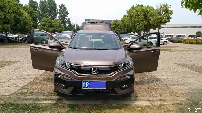 15年8月底驾照下来了,纠结于资金和汽车,也就只能逛逛汽车之家先解解眼馋了,那时候选车有几个要求:1、自动挡,最好CVT。2、一定要有ESP。3、三厢车不考虑,也就两厢和SUV。4、最好带个全景天窗。中间看过闫闯的8款合资小型SUV横评,对XRV那是一见钟情,搜索了所有关于XRV的视频,闫闯的,萝卜的,都对XRV的外观有极高的评价,恩,果然英雄所见略同,虽然同期有缤智,并且普遍缤智优惠幅度大,等车时间短,但是总感觉缤智稍微娘一点,XRV更MAN点,前脸更虎,看起来也大一点,所以啊,就决定XRV了,剩下的问题就是等资金到位了,这一等,小公主就从小班等到了大班,XRV也改款到了17款。