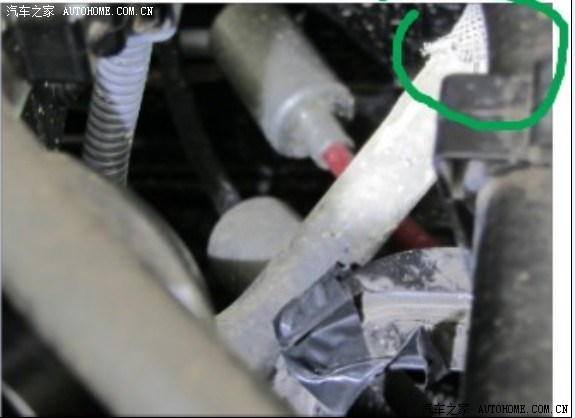 刹车大泵连接到发动机进气,的连接管(真空管),与旁边铁件碰触,真空管外皮受伤!!!