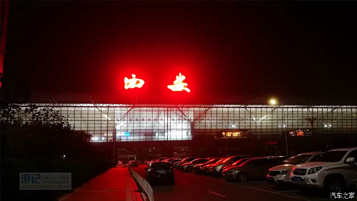 到达西安咸阳机场,夜色下的机场车来车往,十分繁忙。