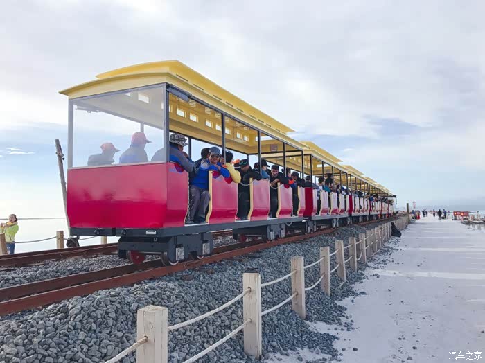 --景区里有众多的盐雕可以观赏,还可以乘坐小火车,到盐湖的深处观光。