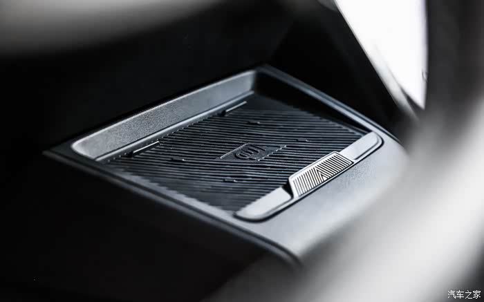在中控屏的后方是有一个50W的手机无线充电区域,这个功率已经超过市面上大多数搭载无线充电配置的车型了,同时底部还有一个风扇给手机和充电器散热。