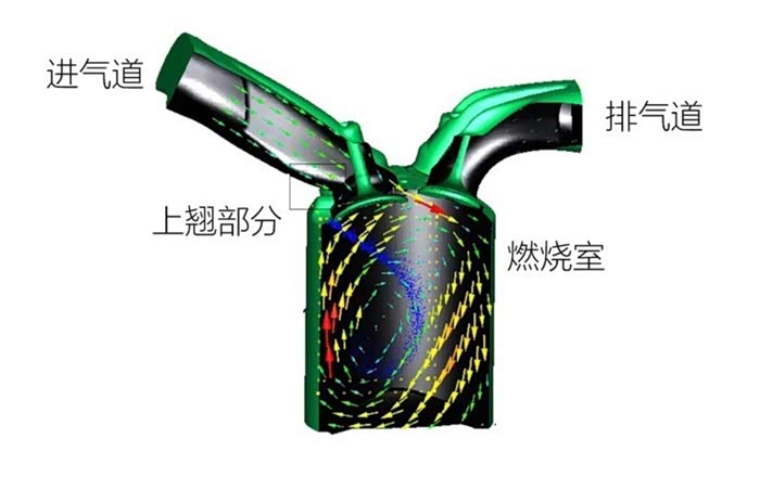 以往的发动机进气道都是笔直的通路,发动机采用鱼腹式进气道是靠着能让燃烧室内的可燃气体按照圆柱体法向面滚动的一种操作。经过这个进气道之后燃烧会变得充分一些,积炭、热效率、燃油经济性都能得到显著提升。