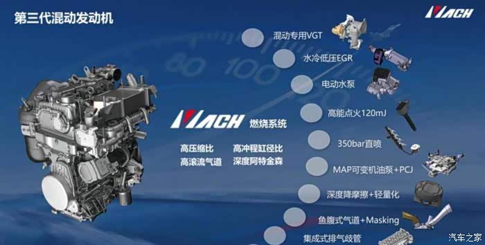 EGR系统其实就是发动机的一个废气再循环系统,它的工作原理就是将发动机做工后产生的废气重新吸入气缸进行二次利用,这样设计的目的一个是为了降低油耗,另一个抑制废气中的氮氧化物产生,利于环保。东风马赫动力MHD混动系统还采用了赛车发动机下放的VGT可变截面涡轮增压器,增加压端最高效率达到80%,在不同工况下均能保证良好的动力表现以及燃油经济性。
