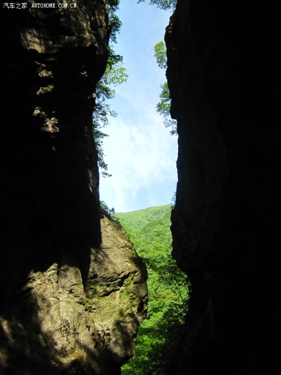 站在葫芦峡底,外面的阳光只能透过森林的缝隙照射进来了。