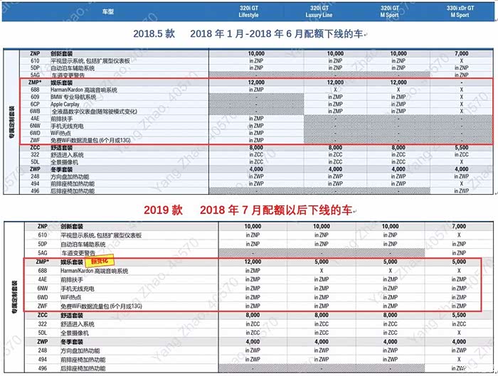 总的来说,此次改款主要是320GT,330GT附带着有点点。<br/><br/>目前3GT价格调价后在不加装饰的情况下为19个点优惠或者18.5个点送贴膜;<br/><br/>希望有更多的车友可以加入到3GT的大家庭中来。<br/><br/>希望对于各位喜欢3GT的车友的定制上,有所帮助。<br/><br/><br/>另外,转帖和盗图的请注明出处,这次我没有加水印,如果发现有人直接盗用,未注明出处,那么以后将会一如既往的增加水印,谢谢。