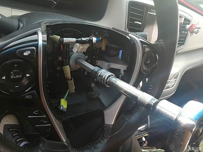 拧下方向盘固定螺丝