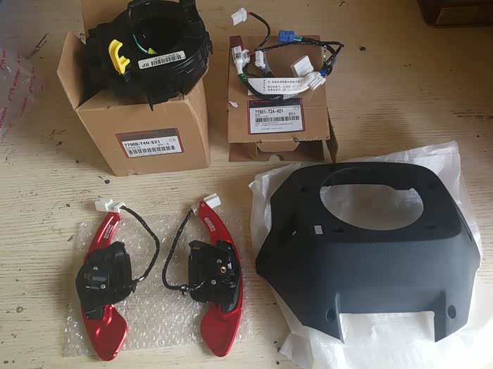 下面先做了小调查,除了至尊版与智酷版,其他配置方向盘游丝接口均为12针(方向盘接口触点数),所以更换拨片换挡,需要更换如下配置:拨片换挡挡片、方向盘拨片换挡后盖、带拨片换挡插口的方向盘线束、20针触点的方向盘游丝,下面开始作业~请大家观看折腾~最后附大白美图~