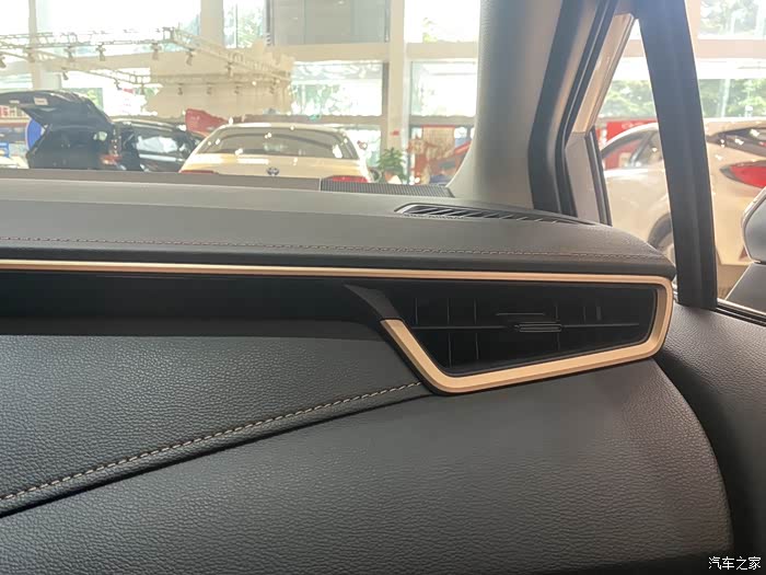 很多金色的内饰装饰条,搭配起黑色的内饰风格非常轻奢,还显得动感。