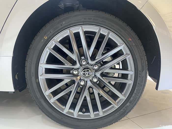17英寸的星空灰铝合金轮毂,为双10条幅造型设计,很豪华,记得以前奥迪A8,就是条幅,而且条幅越多,型号规格越高档~