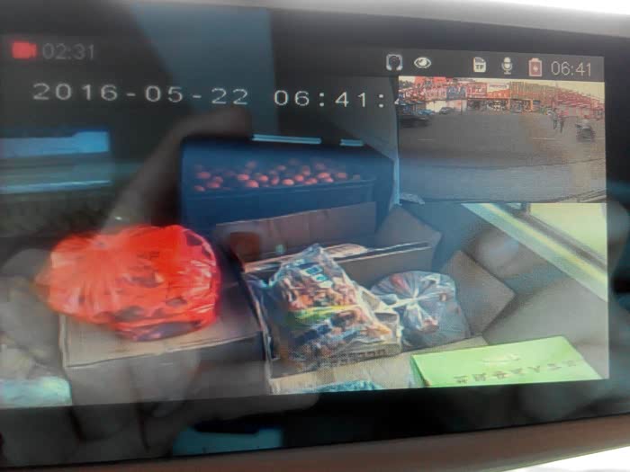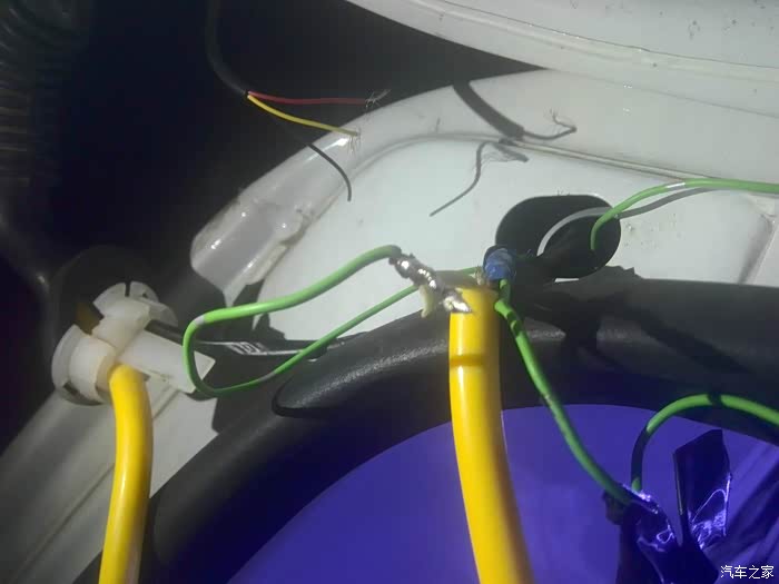 看到这里你们是不是以为就这么结束了 别急 各位看官您接着往下看 因为天天上货 有些时候难免货主会送错货 我就在想 既然我有行车记录仪 为什么不能按一个摄像头呢( 因为有倒车影像所以行车记录仪的后摄像头一直没安)说干就干 首先要不受钥匙门控制 因为要一直通电才能录吗 这好办 把钥匙关掉然后用万能表测量哪个保险丝有12V电 尽量找个安培大点的 因为以后别把保险烧了就不好了 正极拿下 负极随便找个地方打铁 用螺丝固定好就OK了 然后接个点烟器 注意点烟器正负极不能接反 要不然行车记录仪烧了可不是好玩的 最后就是固定摄像头了 我用的是铝合金 用角膜打的 所有工序都OK了之后 在喷上手喷漆 纯白的 喷了两遍 然后就是走线 固定摄像头 废话不多说 上效果图